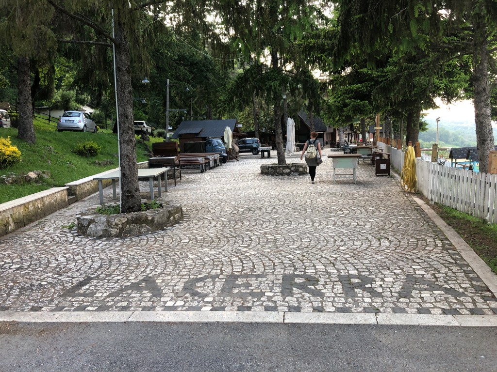 Onze verblijfplaats bleek een schattig huisje te zijn met een dak uit oranje dakpannen en wit pleisterwerk aan de buitenkant, waar hier en daar een stuk muur met bakstenen doorheen piepte. Naast het huisje stond een gigantische kastanjeboom en het uitzicht vanaf de twee stoelen die buiten tegen de muur stonden was fantastisch. De weg was geplaveid met kleine klinkertjes die in een soort rond patroon waren neergelegd dat me aan een rozetvenster deed denken. Het was zo ontzettend mooi!