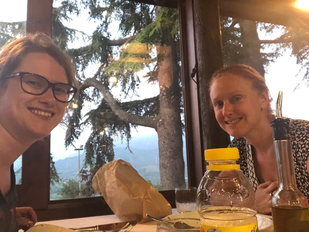 Toen ik eindelijk weer durfde te kijken omdat mijn reisgenoot zei dat we er bijna waren, zag ik recht voor me een prachtig, groot gebouw liggen met witte muren. Links van ons waren kleinere huisjes te zien met een soort terrasjes ervoor en hoger op de berg lagen nog meer van dat soort gebouwtjes. Ergens in een weiland stonden ezels en het uitzicht aan de rechterkant was werkelijk adembenemend. Het leek net of er een blauwachtig waas over de groene heuvels lag die zich golvend tot aan de horizon uitstrekten.