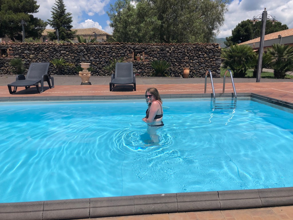 De eigenaresse van de retraite leidde ons over een smal zandweggetje dat zich uitstrekte tussen de wijngaarden door. Recht voor ons keek de Etna dreigend naar beneden. Ongeveer honderd meter van de receptie verwijderd stopten we bij een cottage met maar liefst drie appartementen. De grootste, nummer drie, besloeg de eerste helft van de cottage en bleek voor ons gereserveerd te zijn. Van buiten oogde de cottage eenvoudig, met een vervaagde, okerkleurige stuclaag op de kaarsrechte muren en op het rechthoekige gebouw rustte de suggestie van een puntdak, opgetrokken uit oranje pannen.